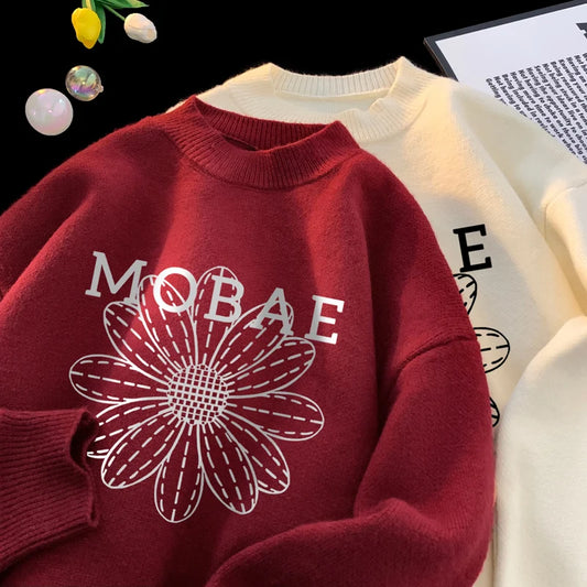 Harajuku Floral Letter Print Sweater Unisex Knitwear for Autumn Fashion