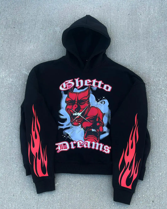 American Hip-hop Flame Hoodie Y2K Goth Street Fashion for Men