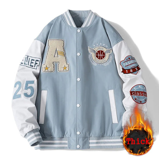 Hip Hop Varsity Jackets Vintage Harajuku Letter Print Coats for Unisex Casual Style