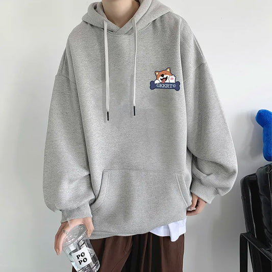 Japan Style Cute Dog Printed Hooded Men Pullovers Hoodie for Autumn