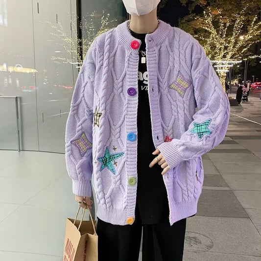 Men O-Neck Patchwork Cardigan for Autumn and Winter Single Breasted Casual Style
