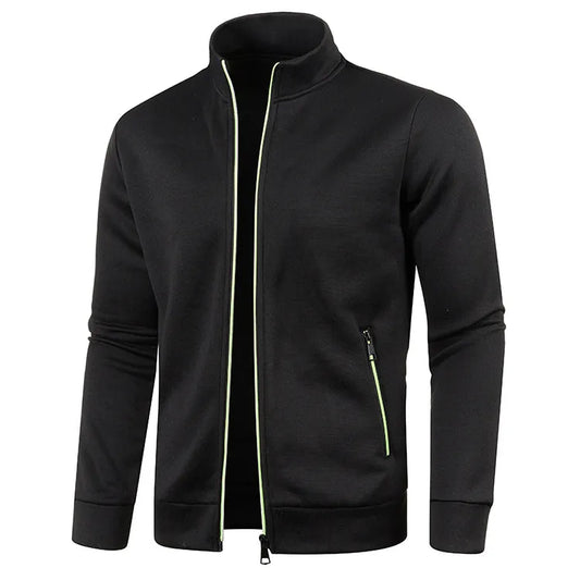 Men Autumn and Winter Jackets Stand Collar Zipper Solid Jacket