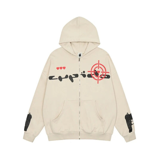 Harajuku Hip Hop Hoodie Zipper Jacket with Gun Graphic Print Gothic