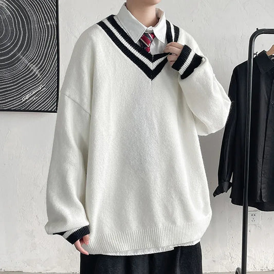 Autumn and Winter Retro Men Sweater Vintage Style and V Neck