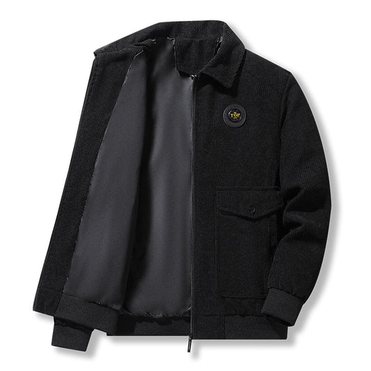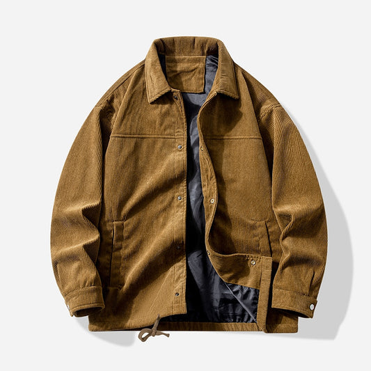 Men Corduroy Vintage Jacket Autumn Plus Size Zip-Up Coat Korean Streetwear Fashion