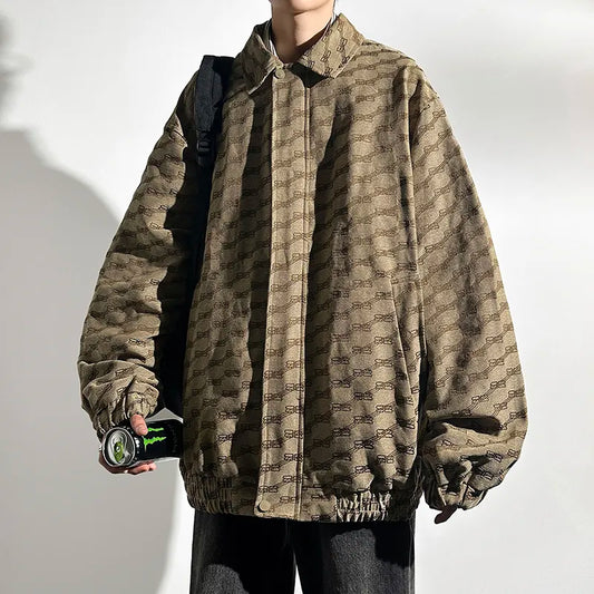 Vintage Baggy Autumn Oversize Bomber Jacket for Men with Zipper