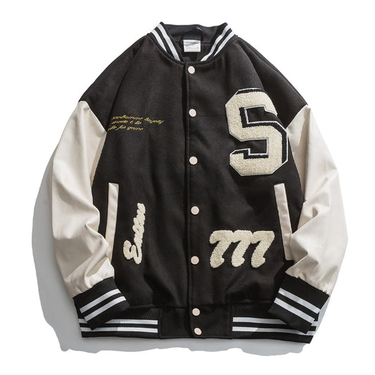 Men PU Leather Vintage Casual Jacket with Towel Embroidery