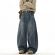 Mens Wide Leg Jeans Flame Embroidered Graffiti Vintage Denim