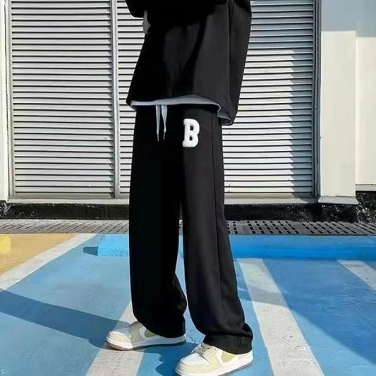 High Street Sports Trendy Straight Casual Pants Men Embroidery
