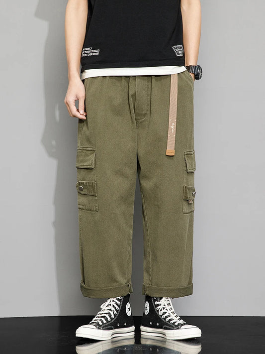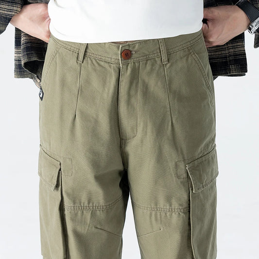 Men's Summer Cotton Cargo Pants Multi Pocket Loose Fit Trousers