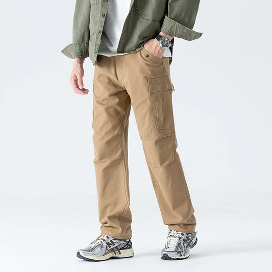 Men's Casual Cargo Pants Outdoor Workwear Wide Leg Cotton Trousers