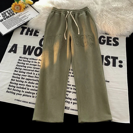 Drawstring Printed Suede Pants Vintage Sweatpants 2024 Spring