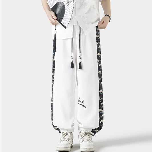 New Men's Summer Oversized Chinese Style Trend Patchwork Leggings Pants
