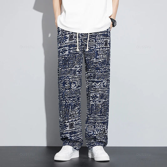 Casual Ice Silk Sports Loose Fashion 2024 Streetwear Men Pants