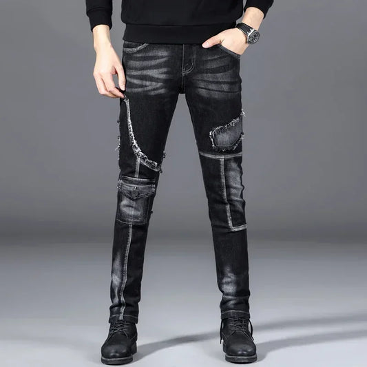 Patchwork Black Stretch Hip Hop Motocycle Jeans