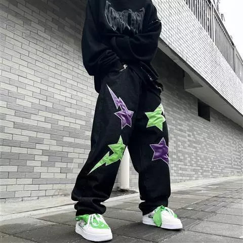 Men's y2k Baggy Jeans Hip Hop Ripped Trousers Harem Cartoon Loose