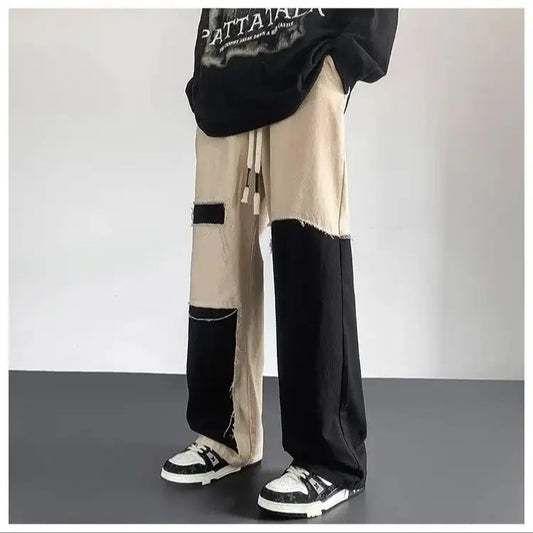 Vintage Ripped Jeans: High Street Wide-Leg Men's Pants