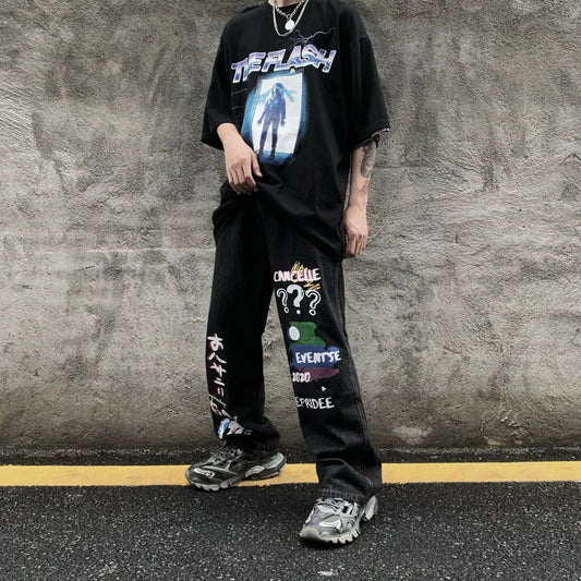 Trendy Street Hip Hop Graffiti Jeans for Men