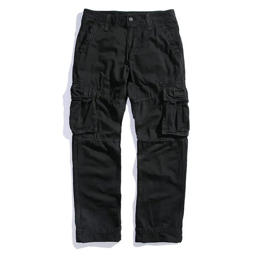Loose Straight Oversize Men's Cargo Pants Black Cotton Casual Trousers