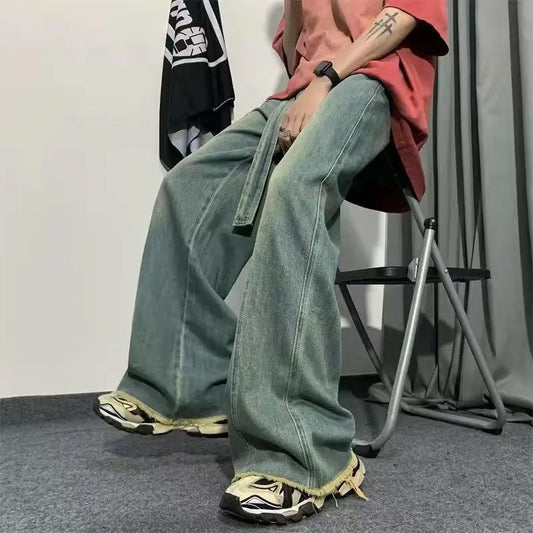 Men's Hip Hop Washed Jeans Loose Straight Micro Flared Streetwear