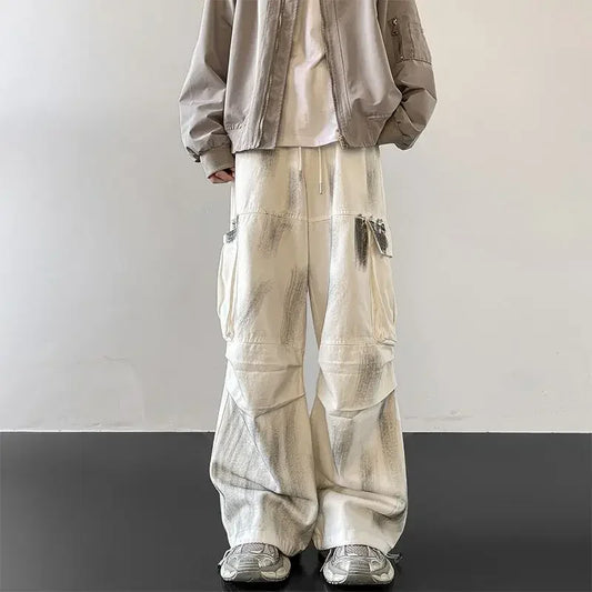 Men’s Splash-Ink Tie-Dye Wide Jeans High Street Loose Pants