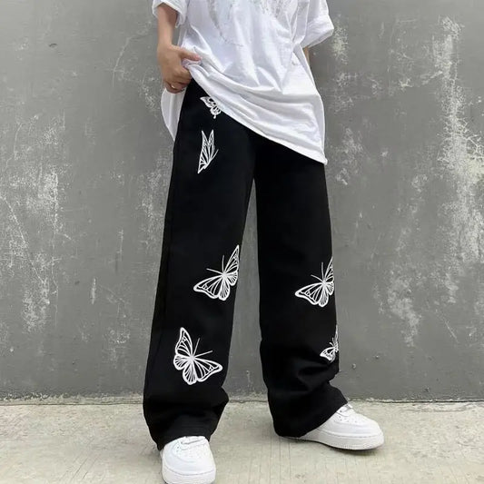 Men's Retro Butterfly Print Jeans Harajuku Hip-Hop Streetwear