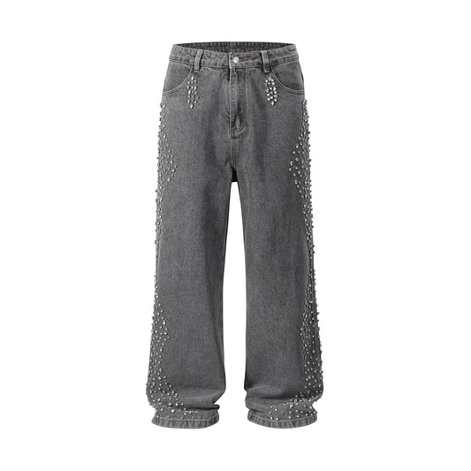 Men's Rhinestone Baggy Jeans Vintage Loose Streetwear Denim