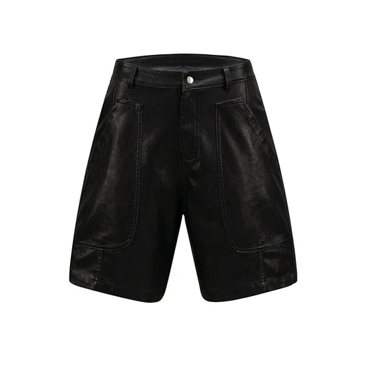 Men's PU Leather Baggy Shorts Wide Leg Vintage Streetwear