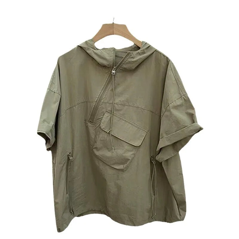 Mens Hooded Polo Shirt Short Sleeve Cotton Blend Casual Summer Tee