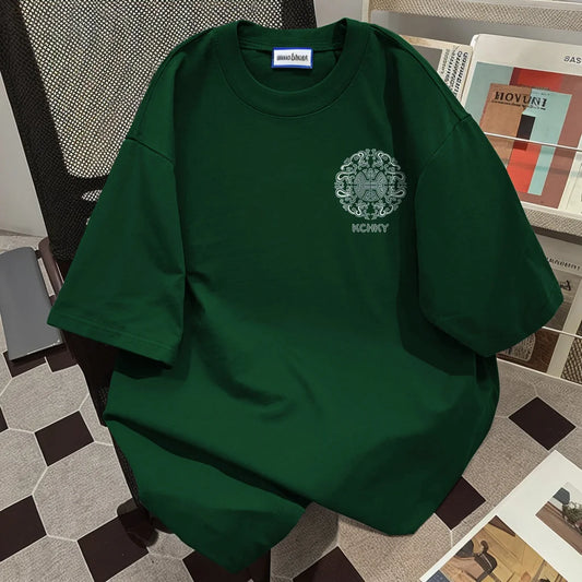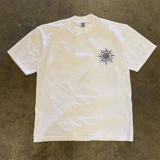 Men's American Summer Street Retro Print Loose Casual T-Shirt