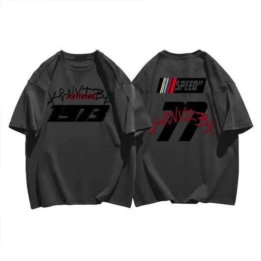 Men's Double-Sided Graphic T-Shirt with "Speed" and Numbers Print