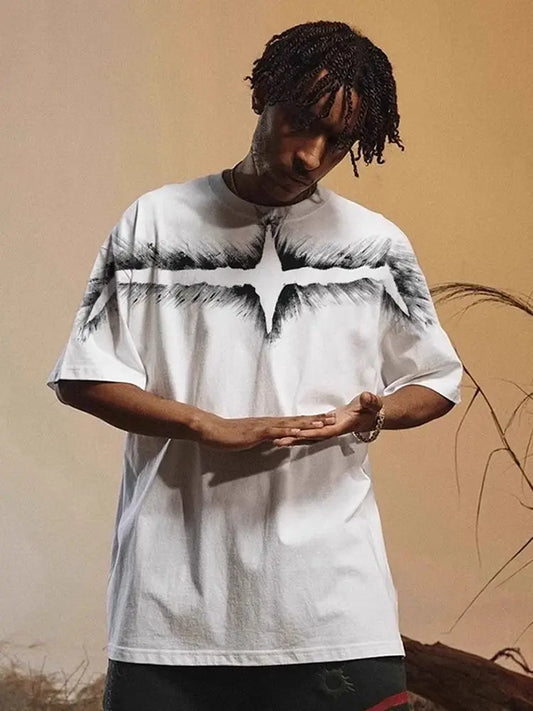 Men's American Style Summer Pentagram Loose Retro T-Shirt