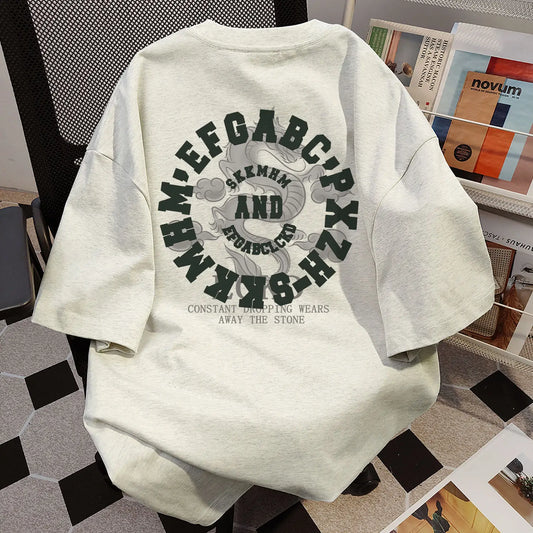 Men's Summer High Street Retro Letter Print Loose Hip-Hop T-Shirt