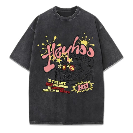 Men's Vintage Washed T-Shirt Retro Punk Hip Hop Cotton