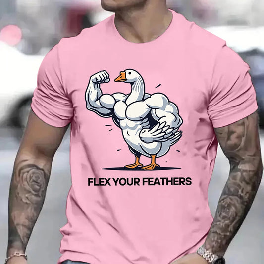 Men's Funny Gym Goose T-Shirt Flex Your Feathers Workout Cartoon Tee
