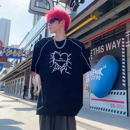 Men's Cracked Heart Graphic Print Casual T-Shirt