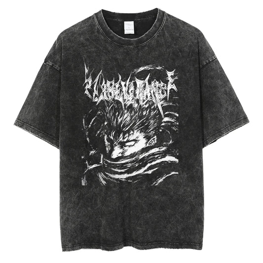 Men's Harajuku Washed T-Shirt Anime Graphic Hip Hop