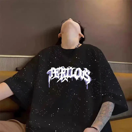Men's Summer Cotton Loose Starry Sky Print Streetwear T-Shirt