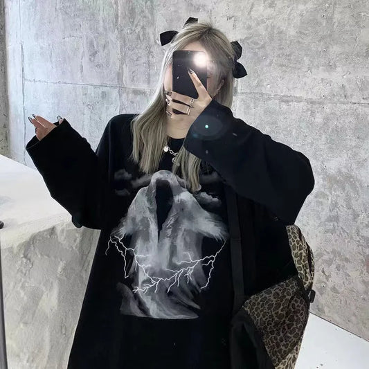 Men's Oversized Anime Long Sleeve T-Shirt Harajuku Gothic