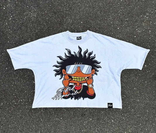 Men's Hip-Hop Cartoon Print Oversized T-Shirt Harajuku