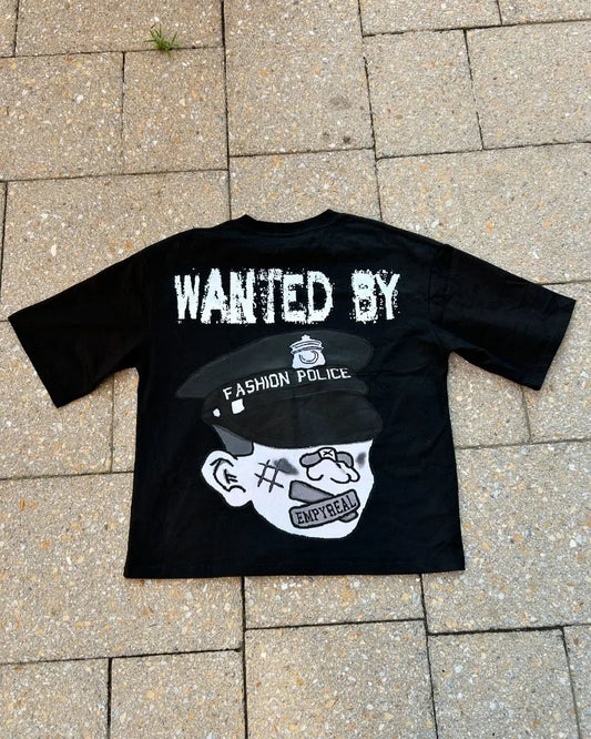 Men's Police Anime Print T-Shirt Harajuku Streetwear Loose Cotton