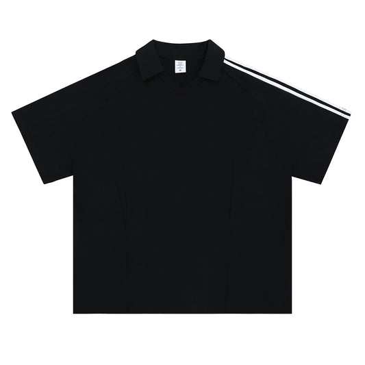 Men's Harajuku Patchwork Striped Sleeve Loose Lapel T-Shirt