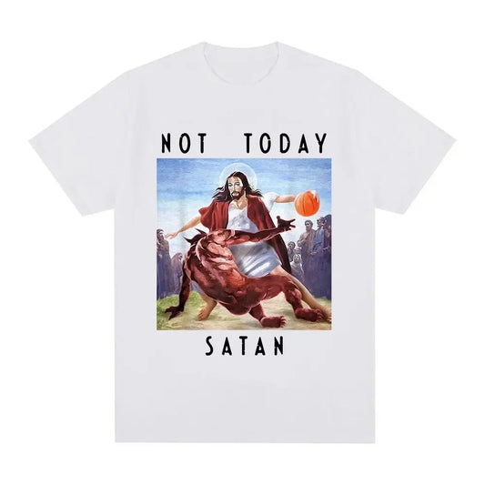 Not Today Satan T-Shirt Jesus vs Satan Graphic Tee Streetwear Men