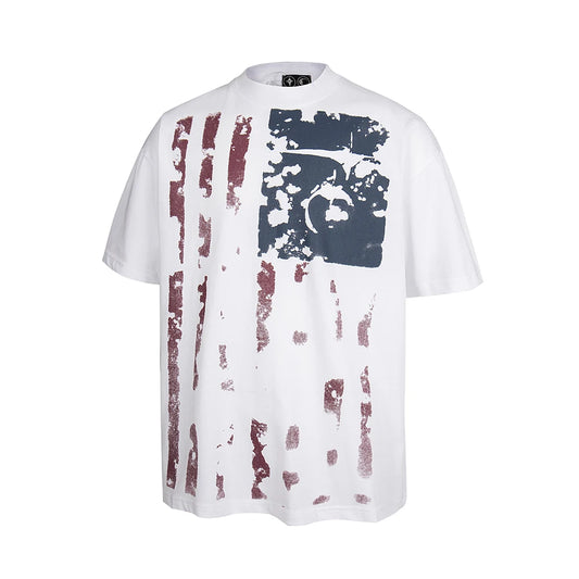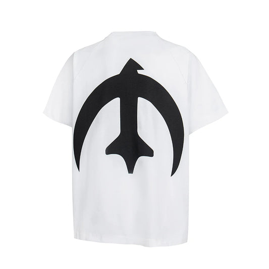 White T-Shirt with Dark Abstract Graphic Casual Streetwear