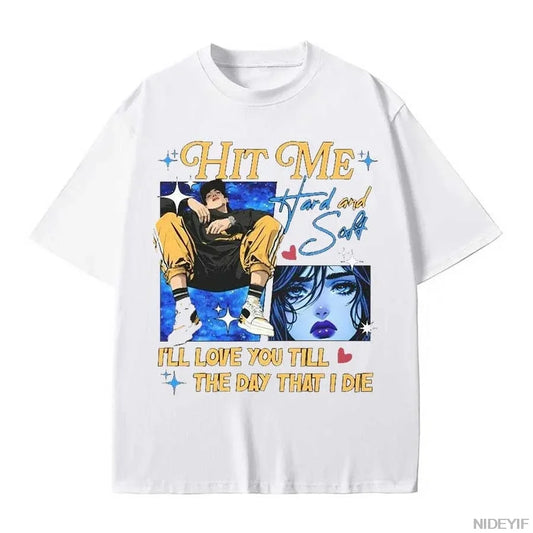 Men HIT ME HARD AND SOFT Tour Billie Graphic Hip Hop Tee