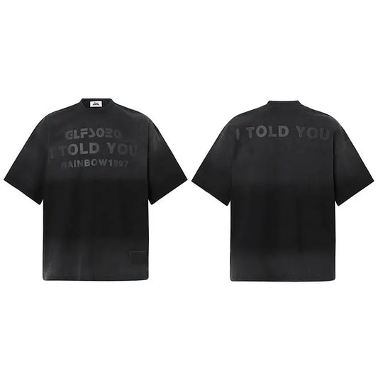 Men Retro Washed Black Hip Hop T-Shirt