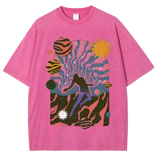 Artistic Print Vintage Washed T-Shirt Men’s Loose Casual Summer