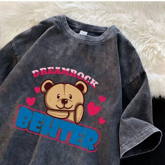 High-Quality Cartoon Abstract Print Men's T-shirt Water Wash Vintage Casual
