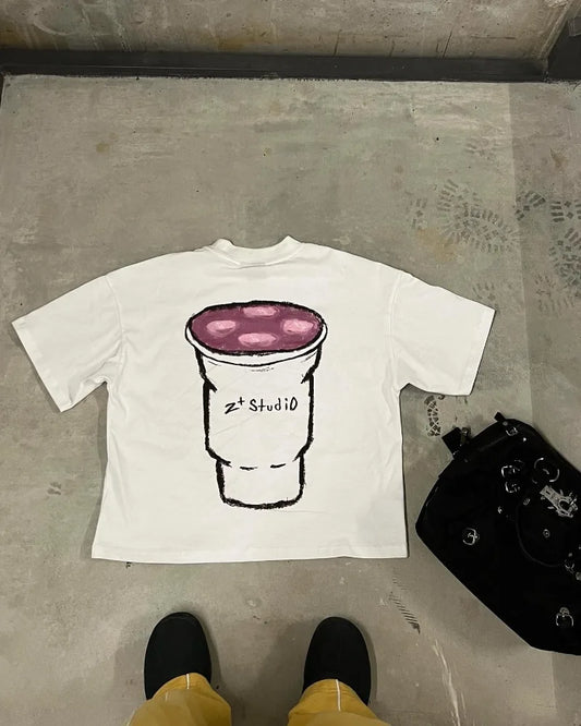 Y2K Drink a Cup Graphic Tee Harajuku Gothic Streetwear