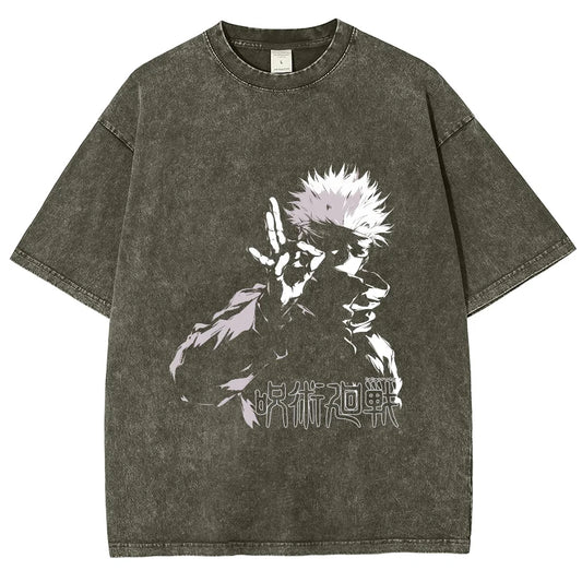 Y2K Anime Gojo Satoru Oversized Washed Tshirt